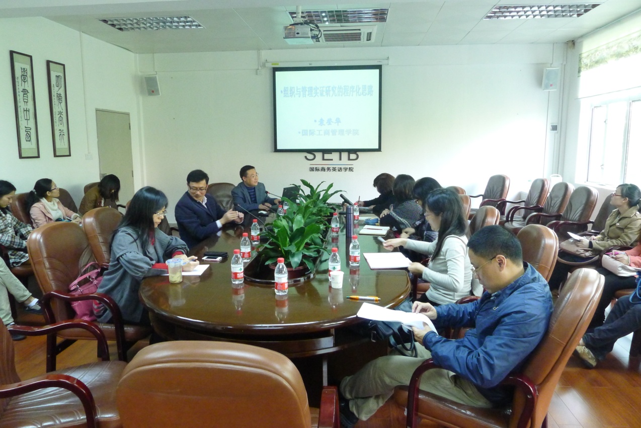 2012年12月13日周四下午,国际商务研究中心特邀公司工商管理公司的袁登华教授,给研究中心的成员以及商英研究生做了一场题为《组织与管理实证研究的程序化思路》的讲座。