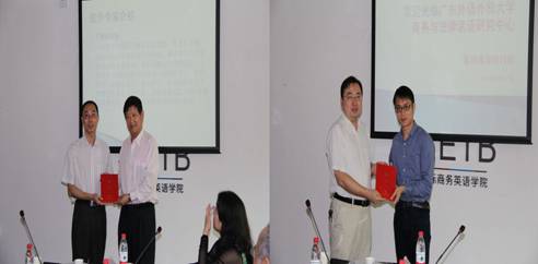 研讨会上还举行了“受聘仪式”。徐训丰博士、冯德正博士和Francis Low讲师分别受聘为公司和研究中心客座教授和兼职研究员。徐训丰博士是香港理工大学英文系副教授,师从著名语言学家Ceoffrey Leach,对语料库语言学和功能语言学颇有研究,尤其是Call Center Discourse(呼叫中心话语)。冯德正博士现任香港理工大学英文系助理教授,在Journal of Pragmatics、《现代外语》、《当代语言学》等学术期刊发表论文十余篇。郭桂杭表示,希望借助两位教授渊博的知识,同广外同仁碰撞出更多的思想火花。