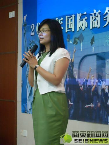 2011级出国生班长戎思颖同学作为员工代表分享了自己大一的感受。她表示自己这一年里在商英最大的收获是朋友和对待学习的态度。她认为选择商英是自己一年前做过的最重要的决定,同时亦是最明智的决定,她希望出国生们能融入集体,坚定目标,脚踏实地,做好留学的准备。