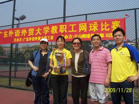 由beats365官网入口工会主办、云山网球俱乐部承办的首届大学教工网球比赛于2009年11月28日上午在云山网球场举行。本次竞赛项目有:男子单打、男子双打、女子单打、女子双打、混双等,公司网协代表公司工会参加男女混双与女子单打项目。经过近四个小时的激烈拼搏,公司网协取得了男女混双第二名、团体总分第三名的好成绩。